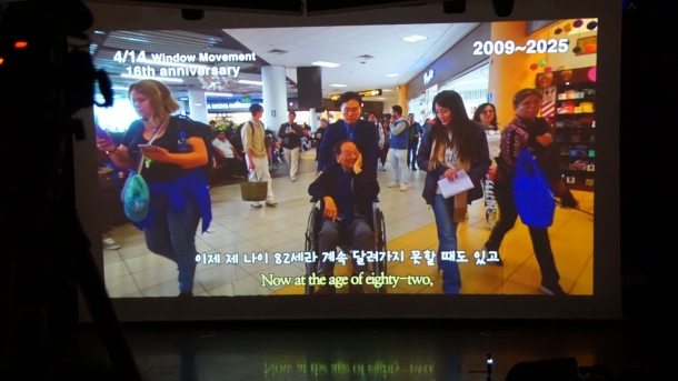 또한 "뉴욕 프라미스교회가 50년, 4/14 운동이 16년간 이어져 온 화려한 성공 뒤에는 이런 눈물과 헌신이 있었다"고 덧붙이고 교회에서 만든 영상을 상영했다. 그 영상에는 건강이 좋지 않아 휠체어를 타고 세계 각지 4/14 운동의 현장에 참가하는 김남수 목사의 모습이 담겨있었다.