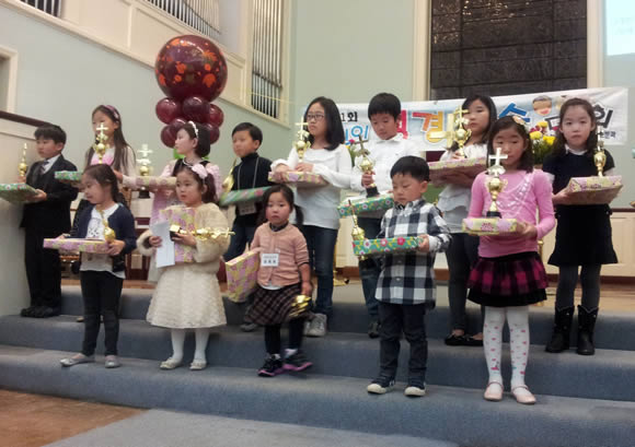 약 2시간 가량 진행된 행사에서 개인전 ‘면류관 대상’은 임 아비가엘 (4학년, 필그림교회) 양이, 고학년 ‘면류관 상’은, 조은희(5학년, 그레이스연합교회) 양이, 저학년 ‘면류관 상’은, 이현명(1학년, 성은장로교회) 군이 차지했다.