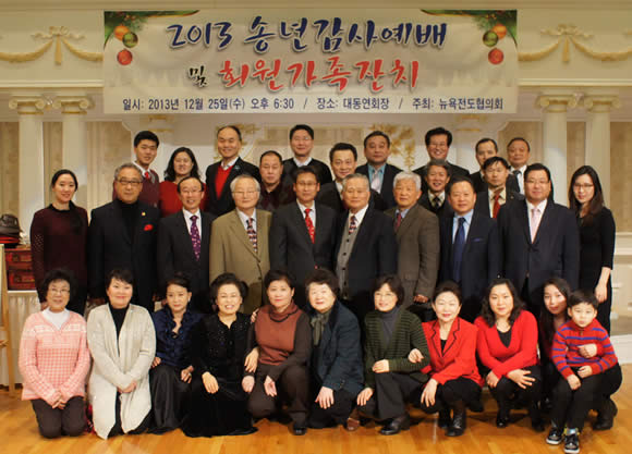뉴욕전도협의회(회장 지인식 목사) 2013년 송년감사예배 및 회원가족잔치가 성탄절인 25일(수) 오후 6시30분에 대동연회장에서 열렸다. 전도협은 2005년 창립되어 만 9년이 되어가고 있다.
