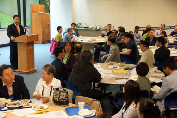 이강 감리사가 한인 코커스 모임에 참가하여 인사를 했다. 지난해 연회까지만 해도 감독이 한인 목회자인 박정찬 감독이어서 여유가 있는 입장이었지만, 이제는 타민족 감독 시대를 맞이하여 이강 감리사가 한인교회들의 입장을 대변하는 입장이 되었다. 이 감리사는 "한인교회에 대한 질문이 있으면 저에게 오고 있다"며 적극 돕겠다는 입장을 밝혔다.