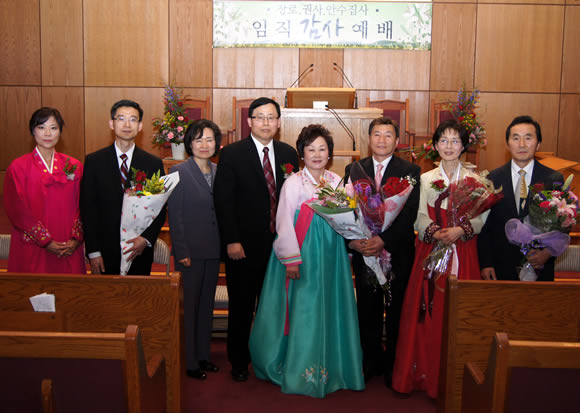 주사랑장로교회(이길호 목사)는 임직감사예배를 4월 7일(주일) 오후 5시 열었다. 교회가 속한 미주한인예수교장로회 뉴욕동노회 관계자들이 참가하여 열린 임직식을 통해 장로 김성욱, 안수집사 박창식, 권사 전성희등 3명이 임직을 받았다.