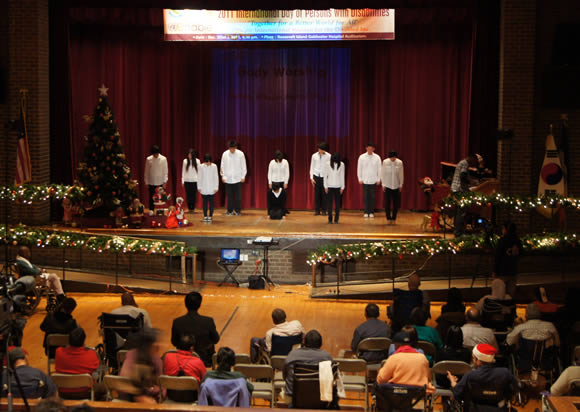 2011년 세계장애인의 날을 기념하여 “우리 서로 잡은 손” 행사가 12월 3일(토) 오후 6시30분 루즈벨트 아일랜드에 있는 골드워러 병원 강당에서 열렸다. 이번 행사는 산하 국제장애인선교회(회장 노기송 목사)가 주관했다.