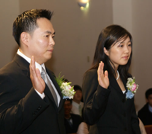 이날 안수를 받은 김성웅(대니 킴) 목사는 73년생으로 미시간대와 비버리칼 신학원을 나와 현재 순복음뉴욕교회에서 청소년 사역을 담당하고 있다. 문하영 사모와의 사이에 1남을 두고 있는 김성웅 목사는 C&MA 한인총회 문형준 감독의 큰사위이다.