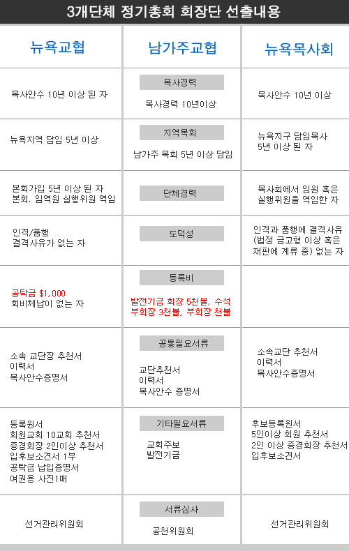 뉴욕교협/뉴욕목사회/남가주교협 정기총회 회장단 후보등록 비교 - 뉴욕은 보수적