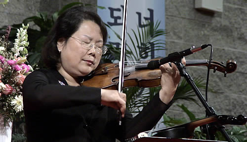 정 권사는 "세상에서 방황할 때", "거룩한 성", "사랑의 종소리", "내일일은 난 몰라요", "오 신실하신 주"등을 폭발적이면서도 아름다운 바이롤린 연주로 큰 박수를 받았다.