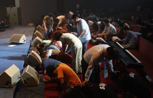 찬양이 진행되는 동안 기도의 소리도 끓이지 않는다. 청소년들에게는 찬양이 기도가 될수도 있다.