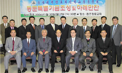 신학교 총동문회(회장 문종은 목사)는 1월 30일(월) 저녁 7시 30분 신학교가 소재한 퀸즈장로교회에서 동문사업 기금조성을 위한 신년 만찬회를 열고 일만 7천여 불을 약정받았다.