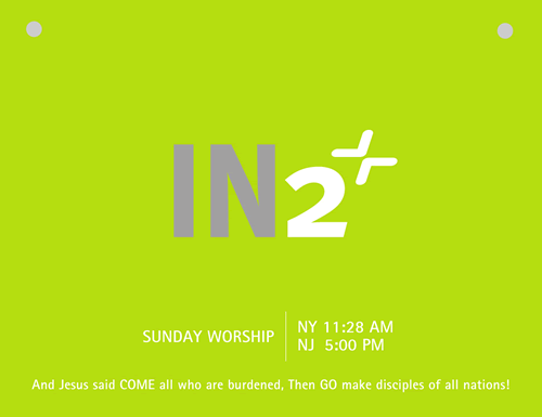 특히 맨하탄 IN2 교회의 예배시간이 오전 11시28분인 것은 “수고하고 무거운 짐진 자들아 다 내게로 오라"는 마태복음 11장 28절의 의미를 빌린 것이며, 오고(Come) 나가는(Go) 것이 IN2의 목회철학이다.
