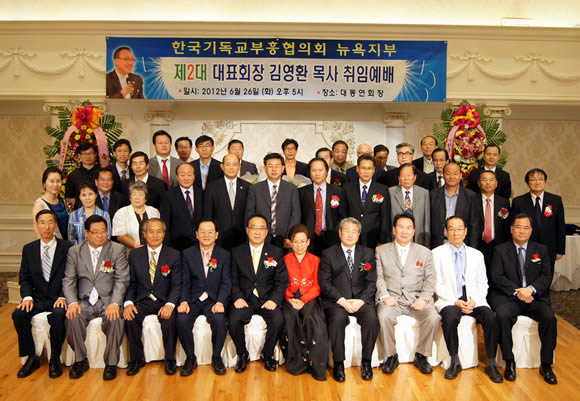 한국기독교부흥협의회 뉴욕지부 2대 대표회장 김영환 목사 취임예배가 6월 26일(화) 오후 5시 대동연회장에서 열렸다. 44년전 설립된 한국기독교부흥협의회는 70-80년대 한국교회 부흥을 이끌어 온 단체이다. 2012년 할렐루야대회 강사인 이태희 목사도 한국기독교부흥협의회 회장을 역임한 바 있다.