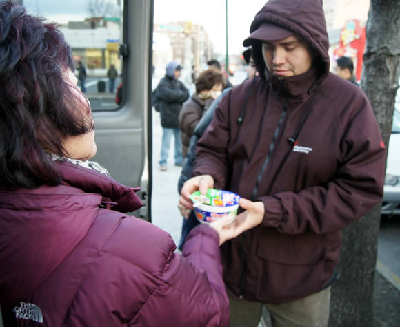 하은교회(고훈 목사) 성도들도 성탄절을 하루앞두고 플러싱 노던과 파슨이 만나는 히스패닉 일용직 노동자들이 모이는 곳을 찾아 커피와 컵라면을 제공했다. 고훈 목사는 주의 사랑을 전함을 통해 마음이 풍요로워 질것이라고 성도들에게 강조했다.