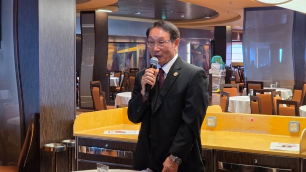 이번 총회는 2025년 10월 31일 금요일 오후 1시, MSC 메라비글리아(Meraviglia) 크루즈 선상 파노라마 레스토랑에서 열렸다. 한국과 미국 내 주요 지회 임원 등 80여 명이 참석한 가운데, 행사는 1부 예배와 2부 총회(회무)로 진행되었다.