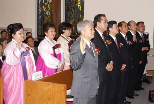 장로집사 임직식은 순서인도 김종훈 담임목사, 권면 이덕수 목사(노회 전노회장), 축사 박맹준 목사(뉴욕노회장), 축가 박성하 집사, 기념품 증정, 답사 유학준 장로, 축도 이광선 목사로 진행됐다. 임직받은 자는 장로장립 유학준, 집사취임 김영길 정재수, 집사안수 정건수 조태성 김용호등 6인이다.