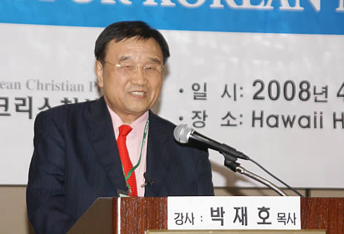 23회 세계한인목회자세미나 둘째 날인 4월 2일(수) 오후, 8번째 강사인 박재호 목사(브라질 새소망교회)가 "목회는 성공하는 것이 아니라 승리하는 것이다"라는 제목으로 특강을 했다. 장영춘 목사는 박재호 목사를 "영성과 지성 등 모든 것을 가지신 분"이라고 소개했다.