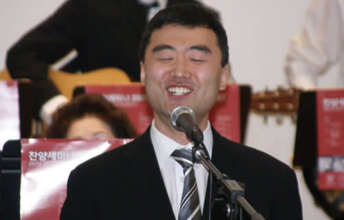 1부 예배에서 말씀을 전한 장재윤 목사는 밀알남성합창단 단원. 장 목사는 "찬양은 노래하는 것이 목적이 아니라 하나님을 높이는 것이 목적"이라고 말했다.