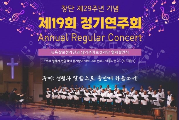 [기사요약] 뉴욕장로성가단이 창단 29주년을 맞아 제19회 정기연주회를 6월 15일 프라미스교회에서 개최하며, 남가주장로성가단과 형제결연식을 함께 진행한다.