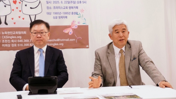 [기사요약] 뉴욕교회협의회(회장 허연행 목사)가 CKSingles.org(대표 이희상 장로)와 협력하여 싱글 크리스천을 위한 ‘엘리에셀 프로젝트’를 6월 22일 시작한다. 목회자 추천 기반의 안전하고 자연스러운 만남을 통해 건강한 기독 가정을 세우도록 지원하며, 향후 다양한 그룹으로 확대할 계획이다.15f78f0d0922391c96ef9704427365ef_1748600548_22.jpg