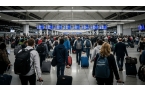 ▲ 역대 최다 인파로 붐비는 공항 터미널, 전광판에는 붉은색 지연 표시가 가득하다 (AI사진)