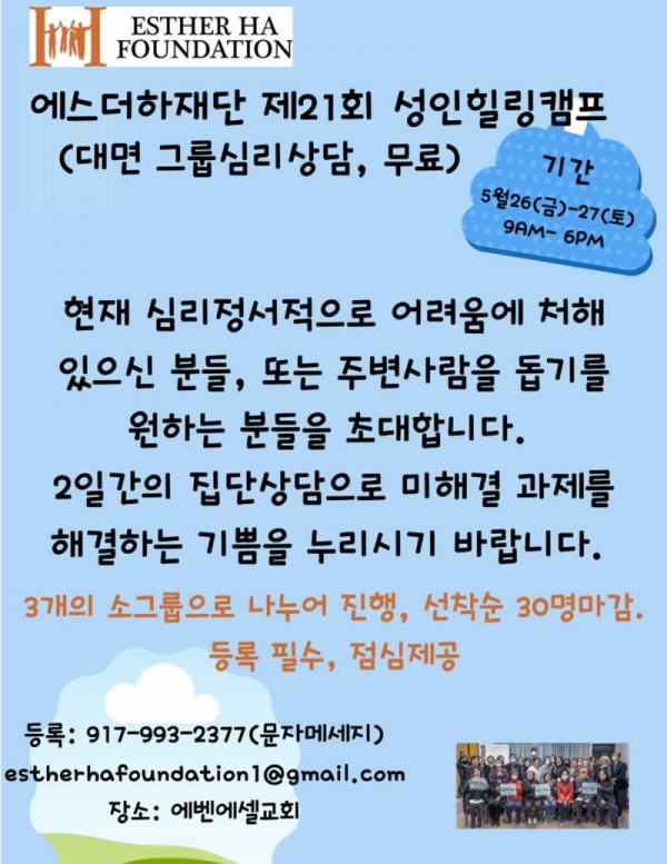 제21회 에스더하재단 성인힐링캠프 (대면집단상담)