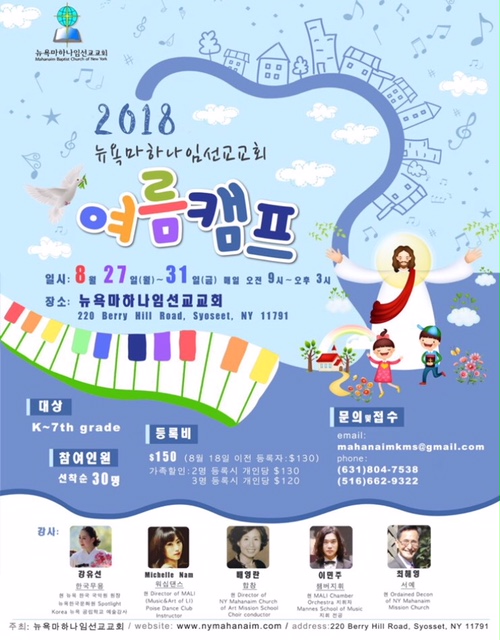 롱아일랜드 Syosset에 위치한 뉴욕마하나임선교교회에서 2018년 여름 캠프를 진행합니다.