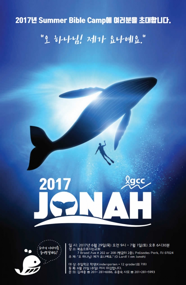 샬롬! 벌써 활기찬 여름이 성큼 다가왔습니다. 더운 날씨에 하나님의 인도하심이 가정마다 늘 함께 하시길 기도합니다. 이번 여름방학을 맞이하여 복음으로사는교회에서 6월 29일(목)부터 7월 1일(토)까지 빵굼터 2층 202, 208호에서 Summer Bible Camp가 있습니다. 2017년 여름성경캠프의 주제는 “선교” 입니다. 이 기간을 통해 하나님께 불순종한 요나가 물고기 배속에서 하나님을 만나고 사명을 발견하였듯이, 우리 자녀들이 예수님을 인격적으로 만나고 새롭게 변화되어 세상 속에서 하나님과 이웃을 사랑하는 사람으로 보냄 받은 예수님의 제자임을 가르치고자 합니다. 특별히 하나님과 만남을 통해 새로운 비전과 삶의 의미를 찾아 어릴 적부터 하나님께 드려지는 축복된 학생들이 되길 기도합니다.