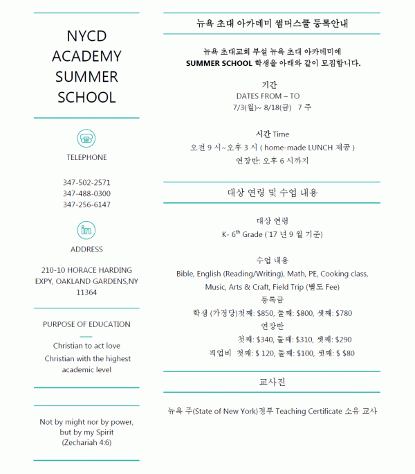 뉴욕 초대교회 부설 뉴욕 초대 아카데미에서