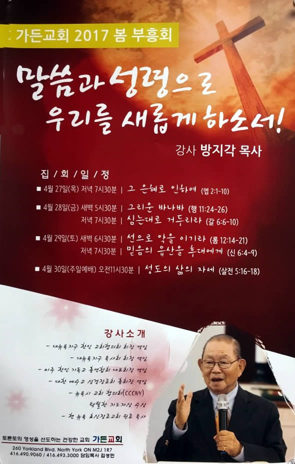 토론토 가든교회, 방지각 목사 초청 봄부흥회