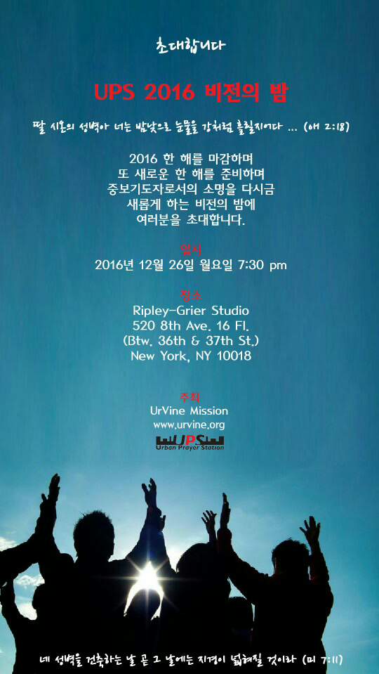 2016년도 한해의 사역을 마감하면서 그간 UPS 에 주신 은혜를