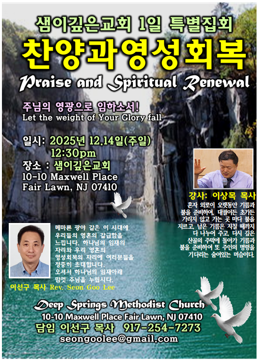 NJ 샘이깊은교회 이상목목사초청 1일 영성집회 개최