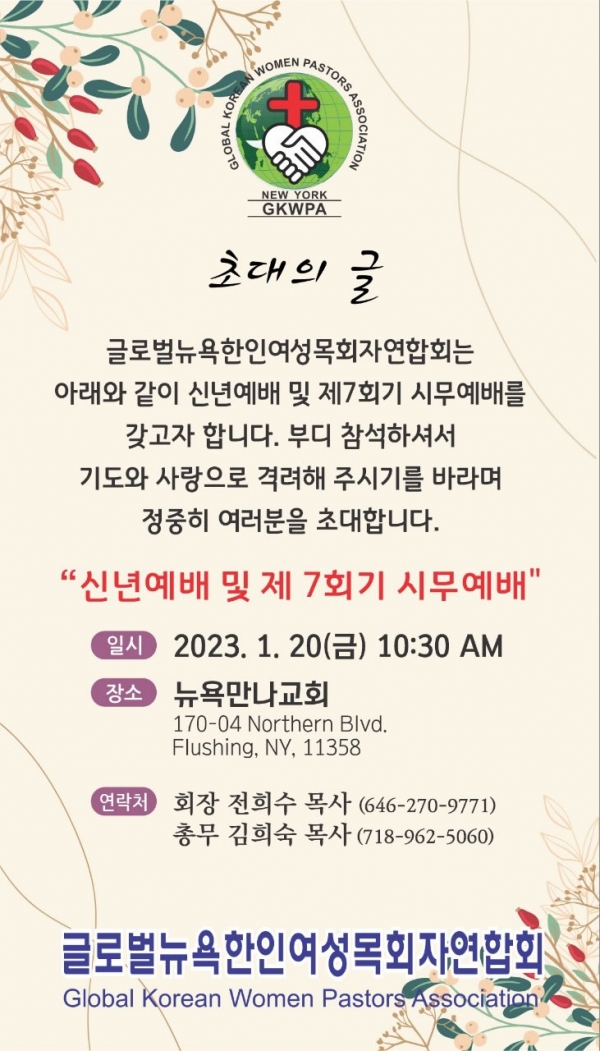 글로벌뉴욕여성목 신년예배 및 7회기 시무예배 > 행사 등 여러가지 홍보