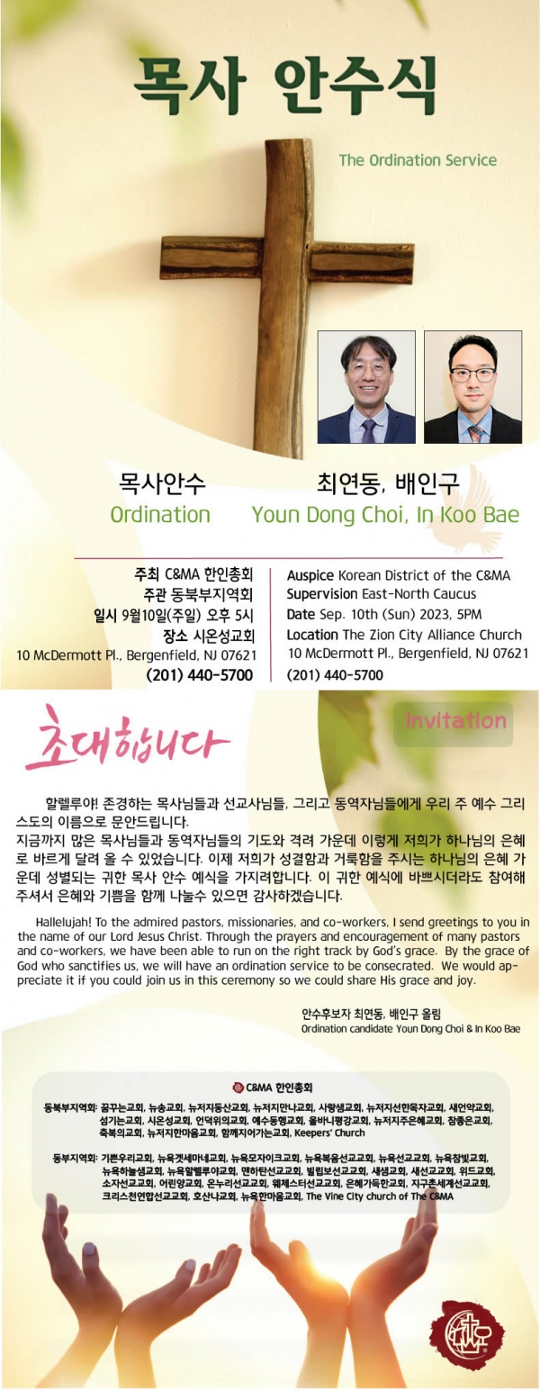 C&MA 한인총회 최연동, 배인구 목사안수식