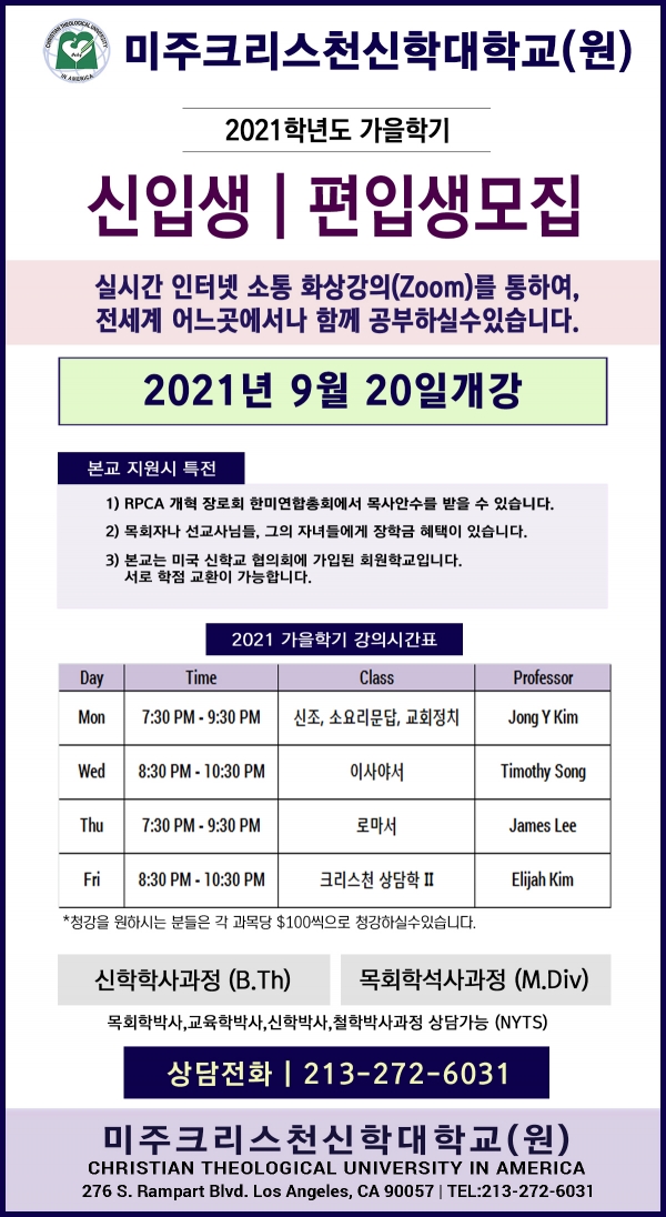 미주크리스천 신학대학교 2021년도 가을학기 학생모집