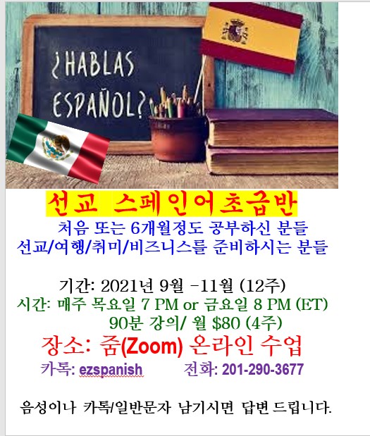 이번에 줌 화상으로 스페인어반을 개강하게 되어 미주와 전세계에서 참여하실 수 있게 되었습니다.