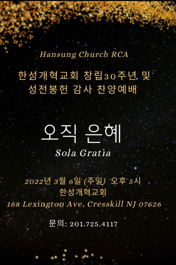 한성개혁장로교회 창립 30주년 및 성전봉헌 감사 찬양예배