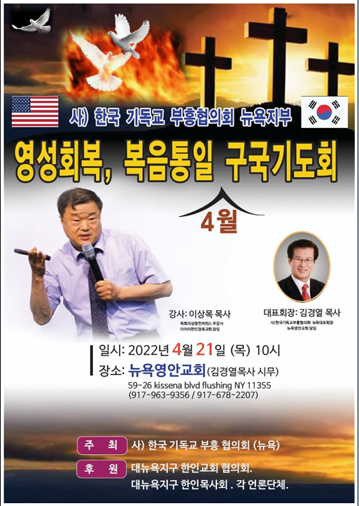 한국기독교부흥사회(NY)주관 영성집회/ 강사 이상목 목사 > 행사 등 여러가지 홍보