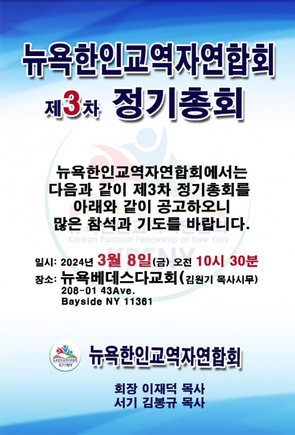 [공고] 뉴욕한인교역자연합회 제3회 총회