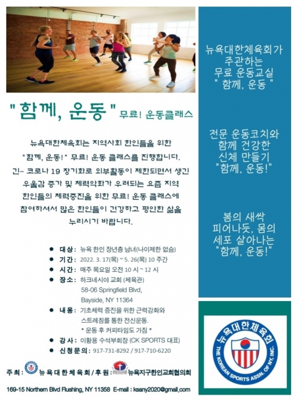 뉴욕교협과 뉴욕대한체육회 주최 무료 운동 클래스