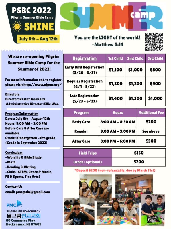 필그림선교교회 썸머캠프 안내 (PSBC)