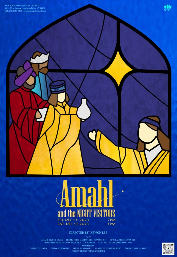성탄의 계절을 맞이하여 뉴욕장로교회가 잔 카를로 메노티의 <아말과 동방박사들> 오페라 공연에 여러분들을 초대합니다. 아기 예수의 탄생을 앞두고 벌어지는 이야기로, 세 왕이 베들레헴을 향해 떠나는 길에 양치기 소년 아말과 그의 어머니가 사는 집에서 하룻밤을 보내며 생기는 일을 다룹니다.