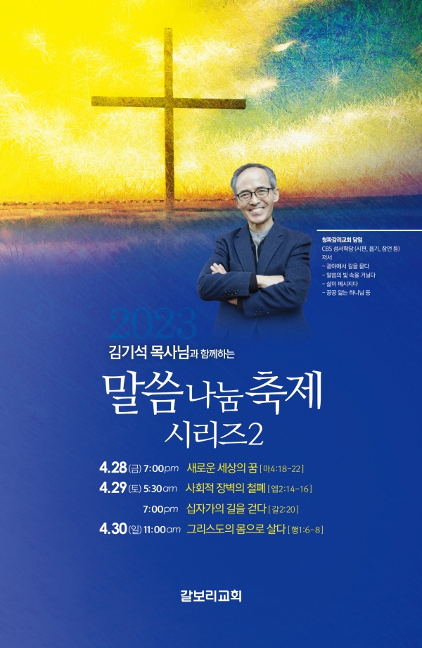 김기석 목사님을 모시고 말씀 나눔 축제를 합니다.