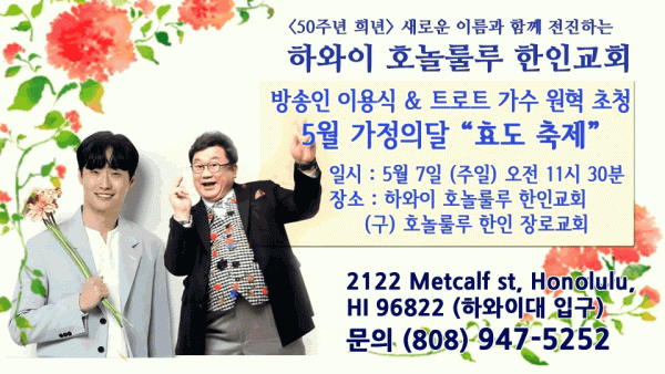 하와이 호놀룰루한인교회 효도축제 페이지 정보 조일구ㆍ2023-05-02 관련링크 이전글 다음글 목록 본문 하와이 호놀룰루한인교회 효도축제 댓글목록 등록된 댓글이 없습니다. 이전글 다음글 목록