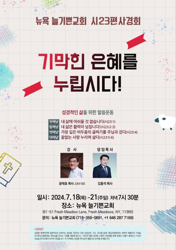 뉴욕늘기쁜교회ㆍ2024-07-11관련링크