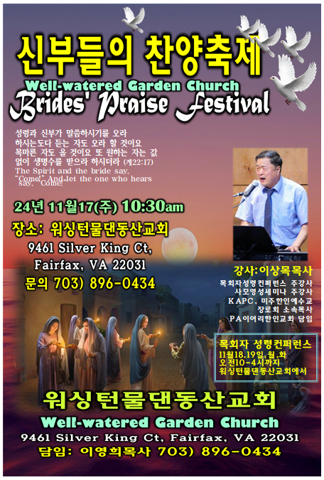 신부들의 찬양축제 (인도: 이상목목사) 24 Virginia Festival > 행사 등 여러가지 홍보