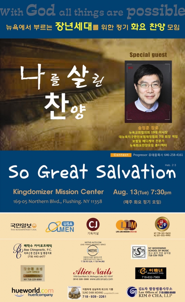 이번 주 화요찬양 모임은, 총디렉터로 섬기고 계시는 송정훈장로님의 '나를살린찬양' 간증 스토리가 이번에 공개됩니다.