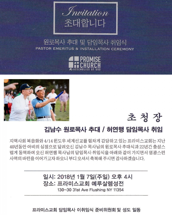 김남수 원로목사 추대 및 허연행 담임목사 취임