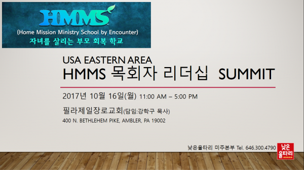 HMMS(부모회복학교) 목회자 리더십 SUMMIT 페이지 정보 낮은울타리미주본부ㆍ2017-10-11 관련링크 이전글 다음글 목록 본문 . 댓글목록 등록된 댓글이 없습니다. 이전글 다음글 목록