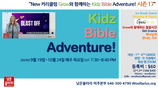 샬롬! 낮은울타리 미주본부(대표간사 : 조희창 목사)에서 <Kidz Bible Adventure 시즌17>을 엽니다.