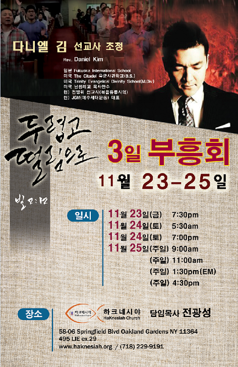 주님의 이름으로 문안 드립니다. 하크네시야교회 부흥회 일정 알려 드립니다.