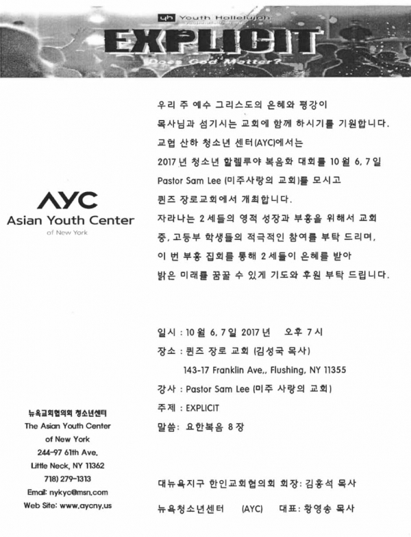2017년도 청소년 할렐루야 대회 > 행사 등 여러가지 홍보