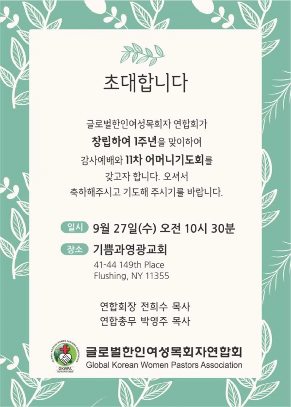 글로벌한인여성목회자연합회 1주년 감사예배