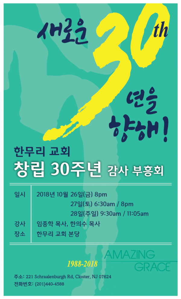 뉴저지 한무리교회 창립30주년 감사 부흥회 > 행사 등 여러가지 홍보